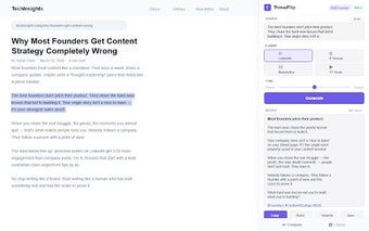 ThreadFlip เป็นส่วนเสริมของ Chrome ที่ออกแบบมาเพื่อเปลี่ยนข้อความที่เลือกให้เป็นเนื้อหาสำหรับโซเชียลมีเดียที่ปรับแต่งได้ ผู้ใช้สามารถนำข้อมูลจากแพลตฟอร์มต่างๆ เช่น LinkedIn, X, จดหมายข่าว และ YouTube มาใช้ใหม่ได้เพียงไม่กี่คลิก โดยการเน้นข้อความและเลือกฟอร์แมตที่ต้องการ ThreadFlip จะสร้างเนื้อหาที่เกี่ยวข้องกับบริบทอย่างรวดเร็ว ทำให้ผู้ใช้สามารถแชร์ข้อมูลที่มีค่าได้โดยไม่ซ้ำซ้อน